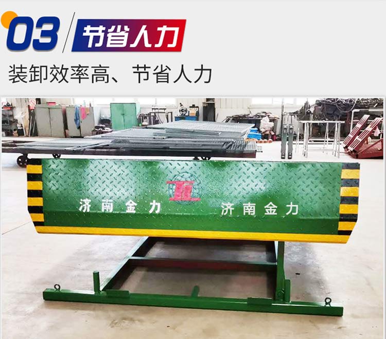 1. 提高裝卸效率:設(shè)計合理、操作方便,能夠快速安裝使用;提高貨物出入倉庫的效率和倉儲作業(yè)。2. 增強安全保障:采用高強度材料制造,承受力強,可有效防止叉車搬運時意外滑倒導(dǎo)致人員受傷的情況發(fā)生。3. 人性化設(shè)計: 可調(diào)節(jié)坡道角度的設(shè)計便于不同高度的貨車進行上下, 更設(shè)有防撞護欄和照明設(shè)備等人性化設(shè)施 , 讓您的生產(chǎn)更貼心 。4. 一臺好的升降平臺可以大大的節(jié)省企業(yè)的時間以及人工成本 ,而且還便捷 還為企業(yè)安全生產(chǎn)帶來新的更大的便利 .5.。它易于清潔和維護,延長其使用壽命;符合人體工學(xué)設(shè)置,工作人員在長時間工作過程中不易感到疲勞。 總之應(yīng)用廣泛且市場前景良好。。